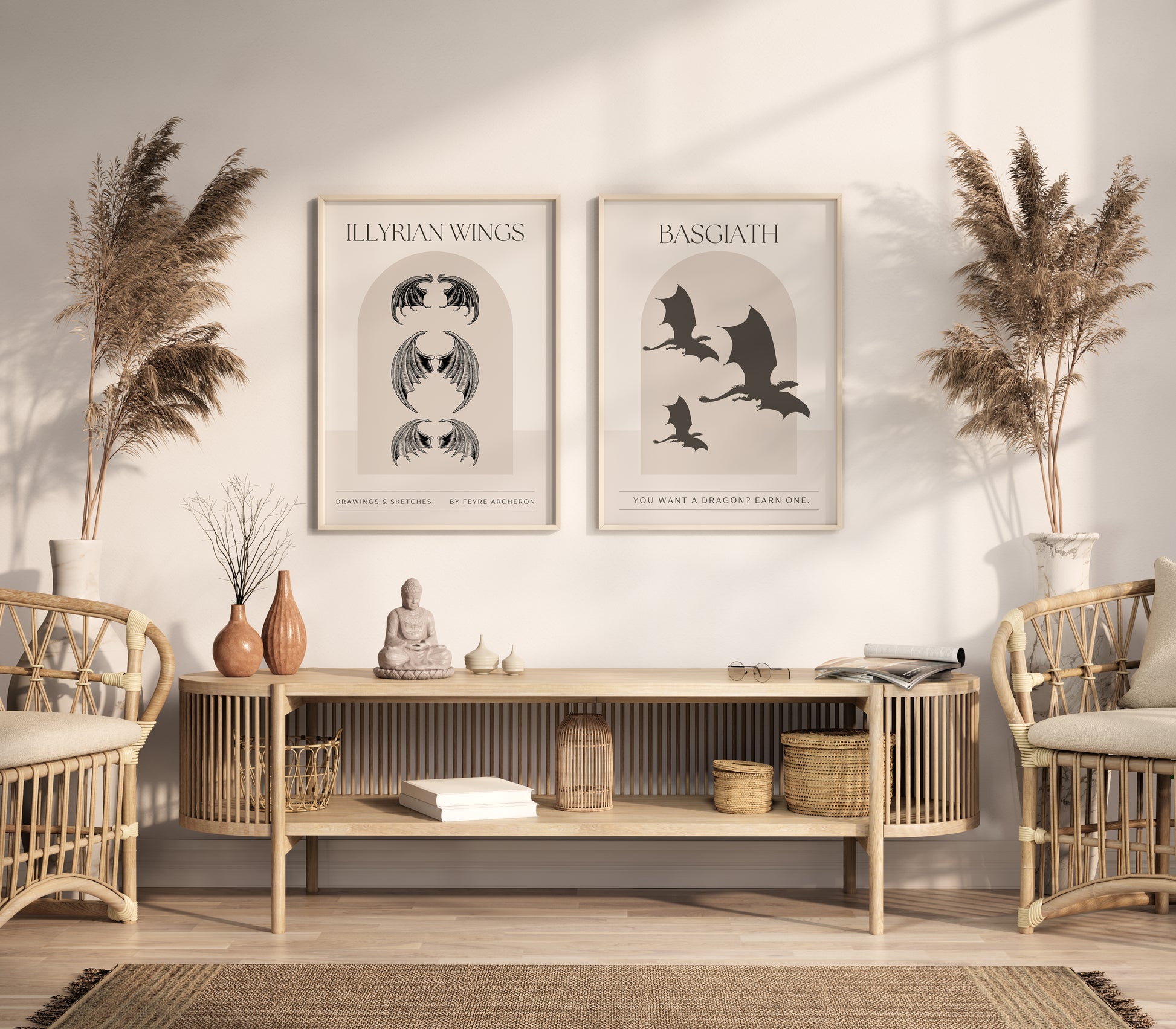Bring the magic of your favorite fantasy worlds to life with this stunning bundle of two digital art prints inspired by the epic book series A Court of Thorns and Roses by Sarah J. Maas and Fourth Wing by Rebecca Yarros.