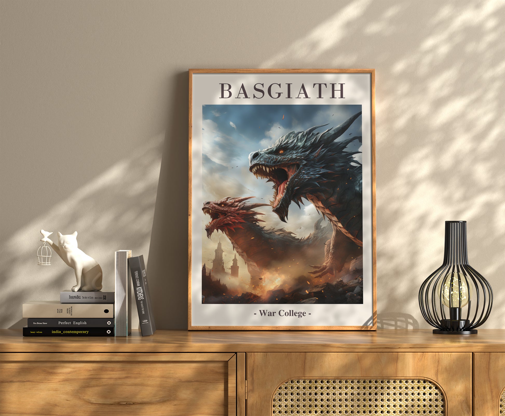 Basgiath War College Print, Fourth Wing Iron Flame Bookish Merch, Dragon Rider Art Print with Violet Sorrengail, Xaden Tairn Andarna Sgaeyl