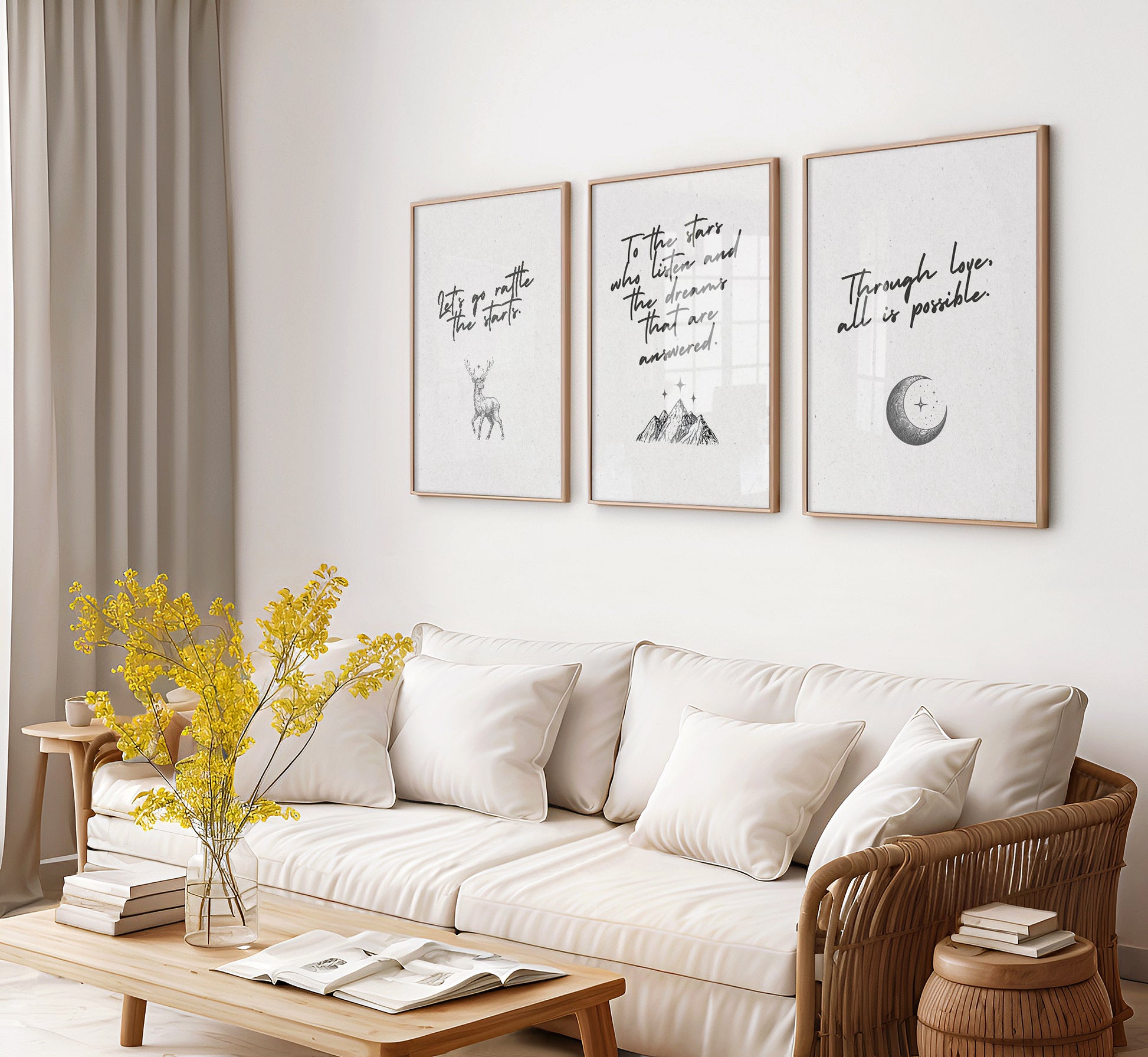 Transform your space with these beautifully designed prints featuring three iconic quotes from the world of Sarah J. Maas! Perfect for fans of her romantasy universe, or anyone in need of some empowering words to inspire their day. 🌟